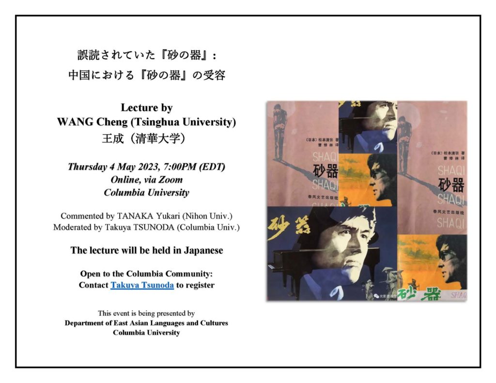 On Matsumoto Seicho’s The Castle of Sand: Online Lecture by Wang Cheng (in Japanese)