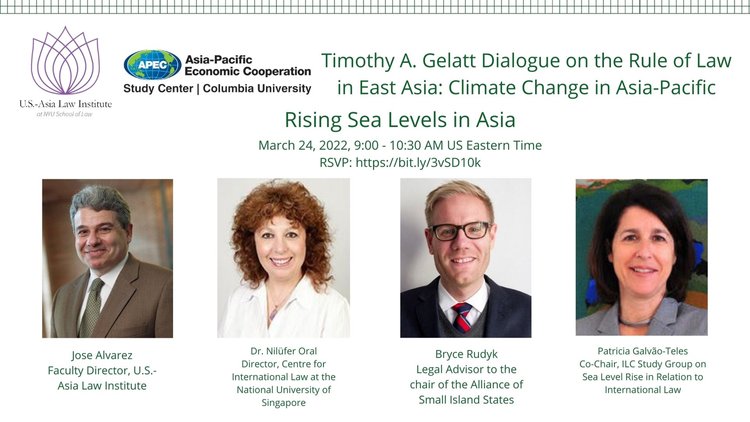 Rising sea levels due to climate change are affecting the livelihoods of millions of persons in Asia-Pacific. While engineers develop physical adaptations, the UN’s International Law Commission (ICL) has been studying needed adaptations to international legal frameworks in order to protect the status and rights of affected states. For more information, please visit this link. REGISTER.