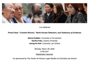 Find out more »Prima Facie: “Comfort Women,” North Korean Defectors, and Testimony as Evidence