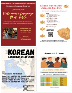 Spotlight EALAC Language Chat Club! Please click on the flyers for more information... Congratulations to Emma Potts! Emma Potts, EALAC alum named a 2025-2026 Fulbright Scholar. Announcement: EALAC Course Offerings for Fall 2025 Please see the attached document for the most up-to-date list of EALAC courses for Fall 2025.